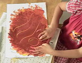 3.手や足を使って絵をかこう 好きな色を指や手のひらや足につけて、こすったりスタンプして思いのままに画用紙にかく。