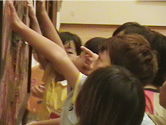 ・すぐに児童たちは、白髪一雄の作品をみつけて集まってきた。作品の中の手や足跡を見つけて熱心に鑑賞していた。
