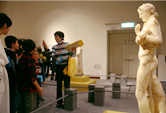 古代ローマ帝国がいつの時代の国であるのか、ローマはどこにあるのか等を紹介しながらプログラムについて説明し、その後展示室内で、6~7人のグループで作品鑑賞を行った。作品鑑賞では、3つのテーマを設けた。