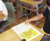 事前に愛知県美術館にお願いして、カラーコピーをクラス人数分用意していただき、児童がよく観察して色作りができるようにした。同じ黄色でも少しずつ違うことが実際の色作りで体験でき、鑑賞だけでなく、児童の今後の実技指導にもつながったと思われる。最後に、授業の感想を発表する場面で、「お気に入りで同じ絵を選んでも、人によってちがうことを言ったり思ったりしているね。」という児童の言葉が出た。「人それぞれ見方が違っていいんだ。」という鑑賞学習の楽しみに気付かせることができたと感じた。展覧会の期間の関係で、学年で美術館を訪れて鑑賞することができなかったことは残念だったが、夏休みを利用して、家族でゴッホ展を見に行くことを勧めた。児童にとって、ゴッホの本物と出会う貴重な機会に、学年やクラスで見学に行けると良かった。