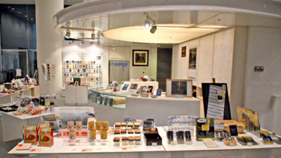 愛知県美術館10階のロビーにあるミュージアムショップでは、美術館で開催中の展覧会図録や絵はがきのほか、コレクションの絵はがき、過去に開催された展覧会図録、オリジナルグッズなどを販売しています。