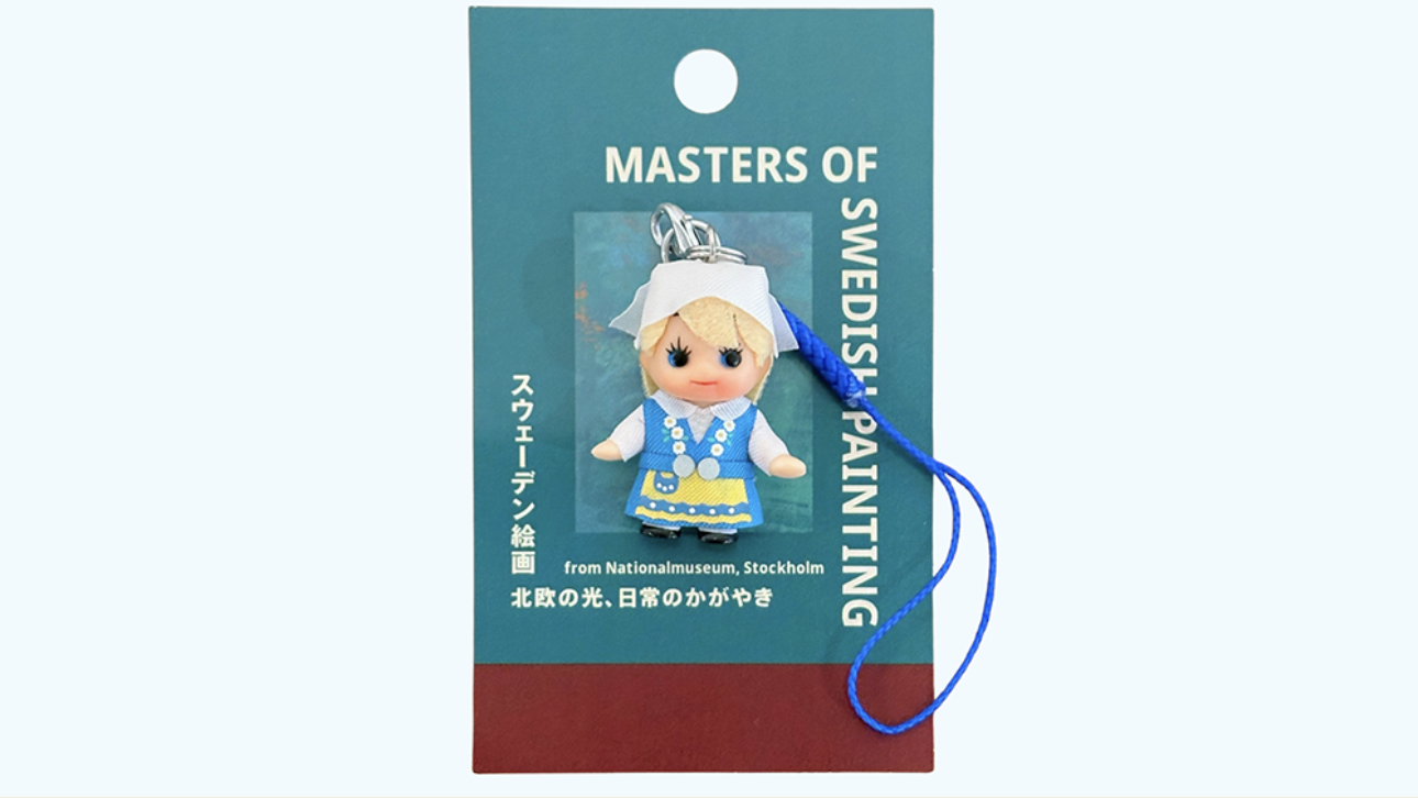 スウェーデンの公式民族衣装をまとった、オリジナルコスチュームキューピーがセットになったチケットです。青いワンピースに黄色いエプロン、白い帽子が特徴。まさに100%スウェーデン!スウェーデンの魅力を詰め込んだ可愛らしい本展限定のキューピーです。